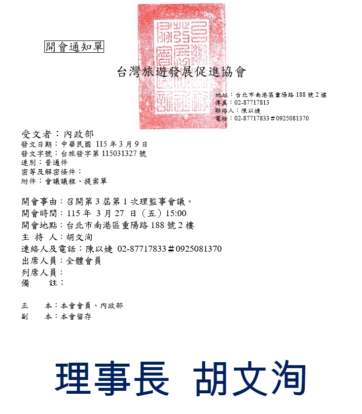 發文字號:台旅發字第115031327號